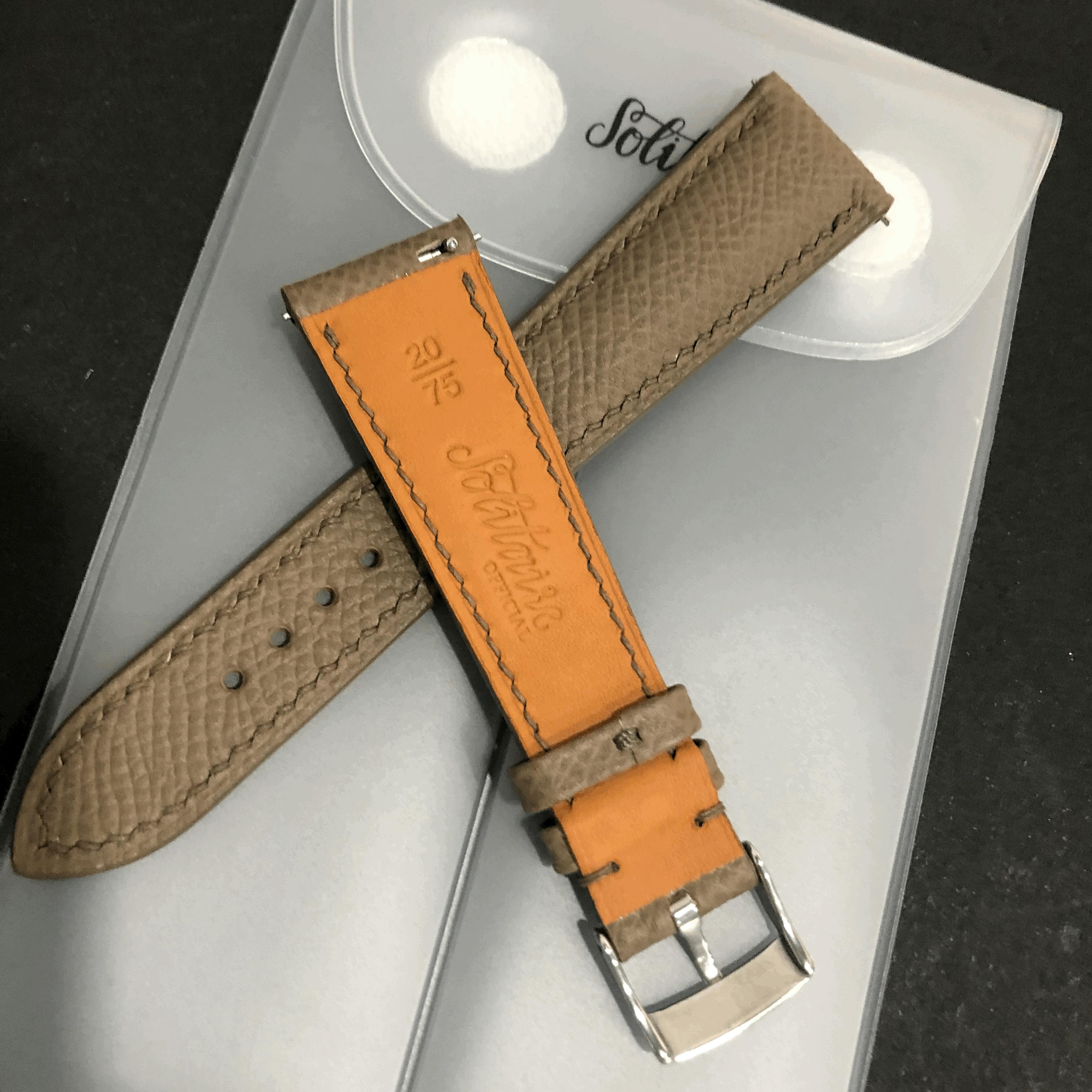 The undersides of all our ready-made straps are crafted from French Zermatt leather.